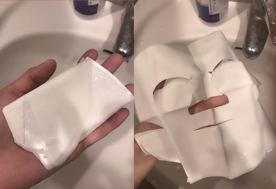 面膜紙一體成形,紙質柔韌有彈性,還可覆蓋眼皮溫和不刺激,不挑膚質,精華液是呈現白色乳液狀。