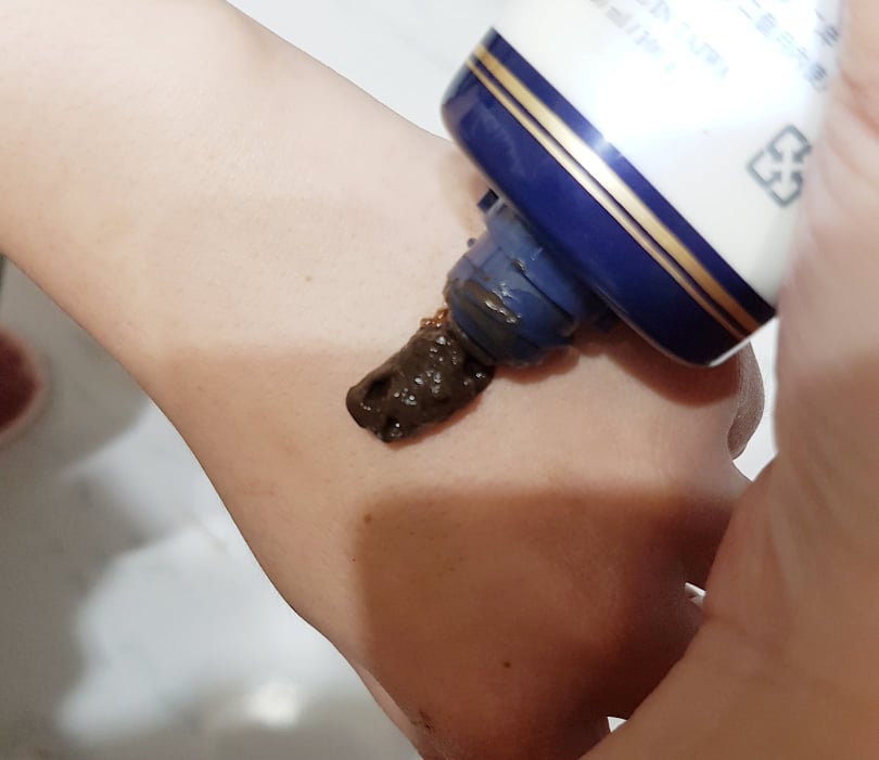 內容物讓人非常驚艷,帶有濃厚的漢方中藥味,有別於一般市售的面膜有著各種香氣。這款感覺非常天然無添加任何化學成分,讓人真的覺得自己現在就是清代宮廷的小主,用著最高等級的藥草敷臉,以漢方草本泥為基底,增添珍珠粉、天然鎖水磁石及桑白皮萃取液等潤膚養顏成分,享受慈禧等級的保養。