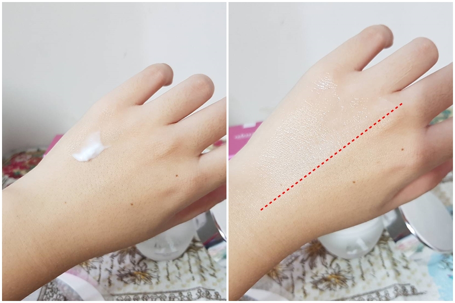夏天時可以抹薄薄的一層,抹上去之後稍作按摩,很快就吸收了,而且沒有泛油光喔!臉還是一樣水潤。