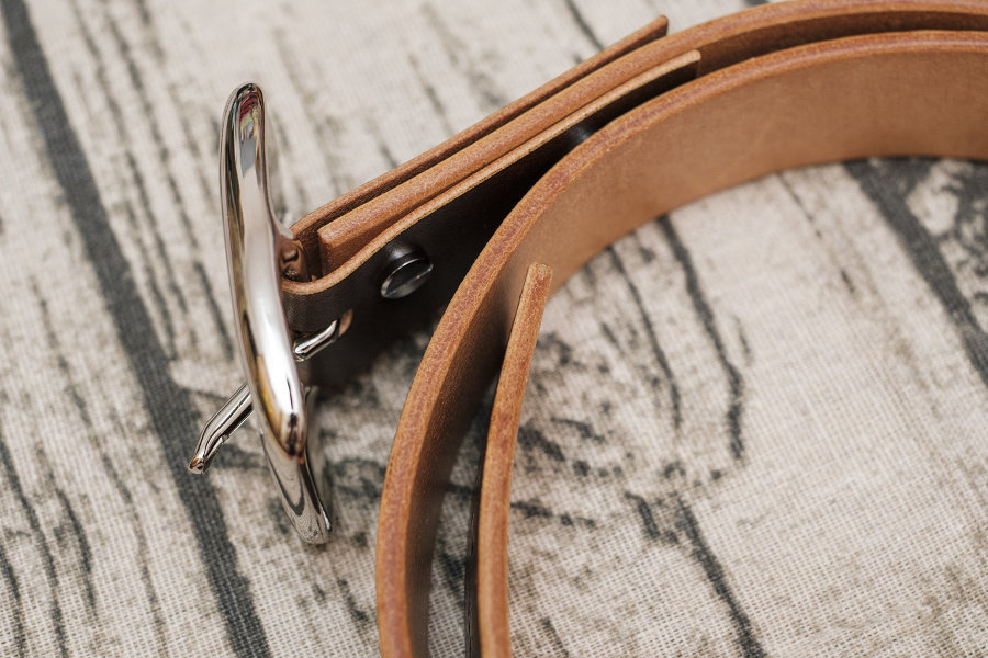 皮帶頭能凸顯個人品位讓整體穿搭加分,但絕不能奪走全身穿搭光彩,所以我選擇簡單的百搭銀色,採休閒又不失穩重的方框。因皮革的特性會讓五金快速鏽蝕,「東千里革製間」除了採用純銅材質外,也選用加工”耐酸”處裡的五金,做二重保護,質感滿分且不怕鏽。