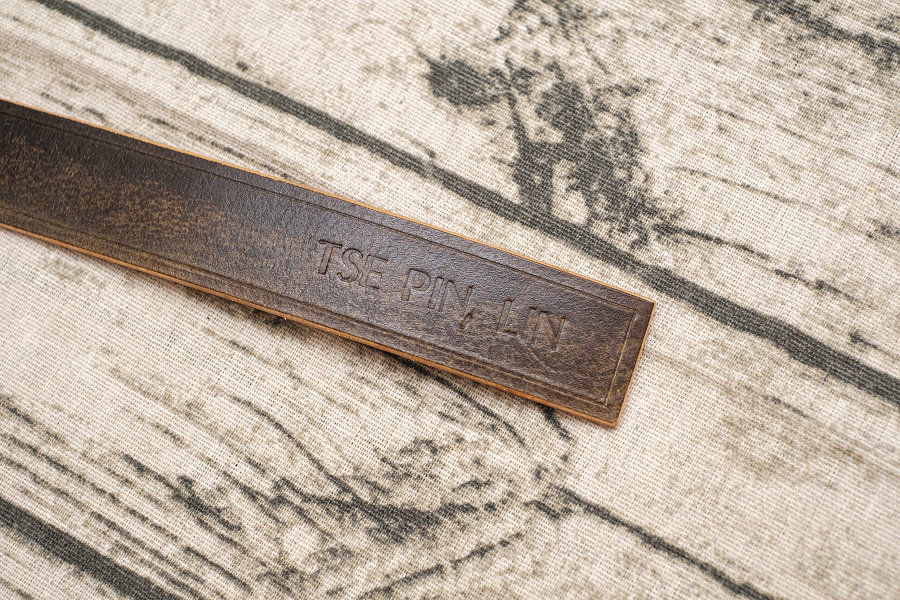 皮件邊處理方式採用傳統工藝磨邊方式,在皮件直角部分導角處理,用木製磨緣器在皮邊來回數次,再用1000號以上細沙紙細拋光,兩者動作重覆數次,直至邊緣滑順方止。此工法注重皮件打版的準確度,只要誤差些許,皮革邊就很難磨至順滑感,數片皮料黏合磨緣之後如同一片。皮帶使用方式,當要抽出皮帶時,可以平抽減少皮帶邊緣磨損,皮帶為3.2CM寬度設計,皮帶頭內寬為3.5CM,留有空間減少皮帶邊的損耗。