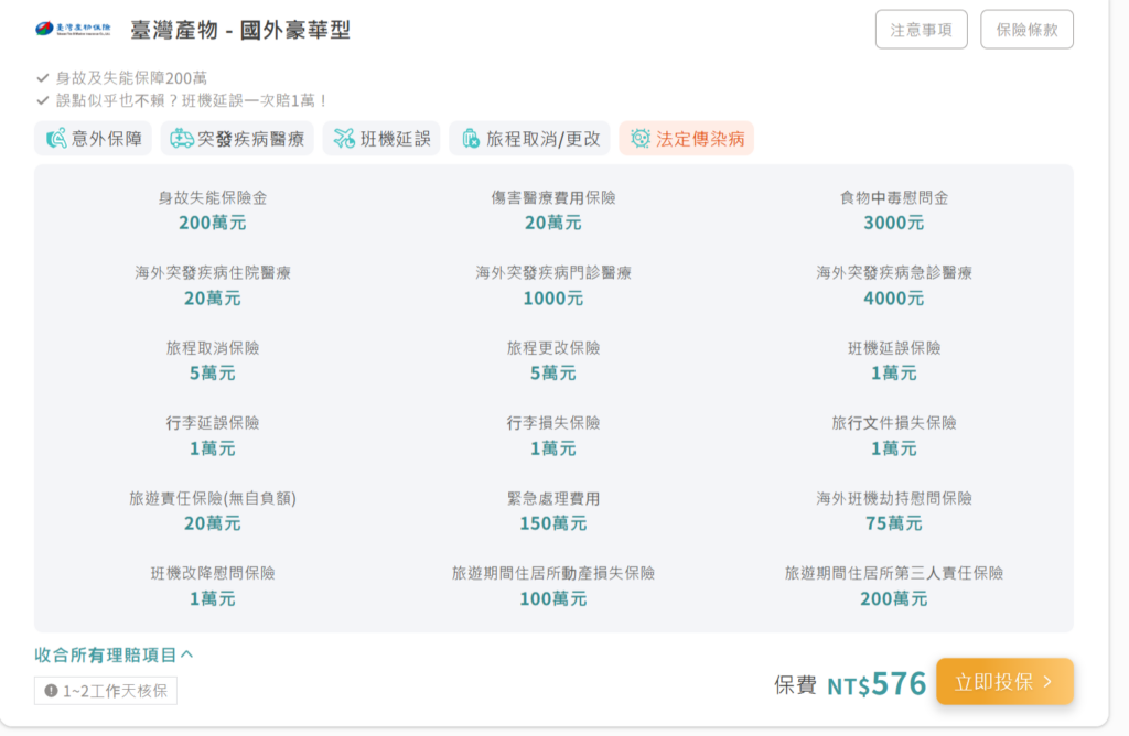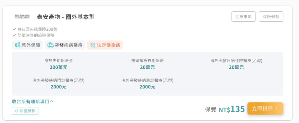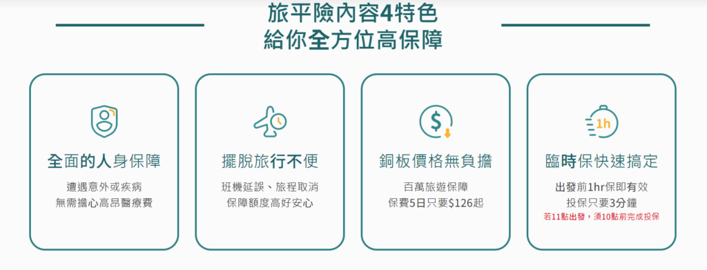 因此如果真的快出發才想到要保或是臨時出國,出發前一小時就能擁有保障