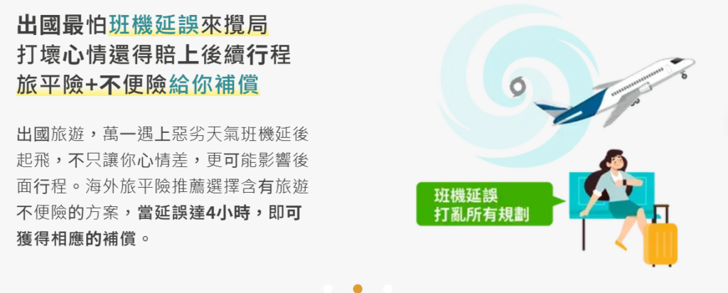 易安網清晰明瞭的指出保險優勢,即是你不懂保險也能快速了解保障內容;旅平+不便最常用到的保障就是班機延誤了,只要延誤達四小時,跟航空公司申請延誤證明,回台灣就可以跟保險公司申請理賠囉!
