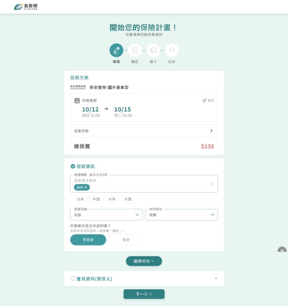 易安網可一次瀏覽多間不同保險公司的不同方案,在多元客觀的資訊環境下,消費者可自由選擇,操作方便、資訊清晰、流程快速又簡單,幾乎10分鐘內可完成,省去很多比較時間,最快出發前一小時就能投保,保險小白也能快速上手,以後出國投保就靠它了!