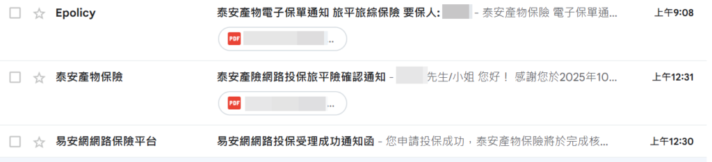 簡訊跟e-mail都會收到電子保單(收到保險公司寄來的核保成功的信就是投保成功,不是等到收到保單才成功喔!)