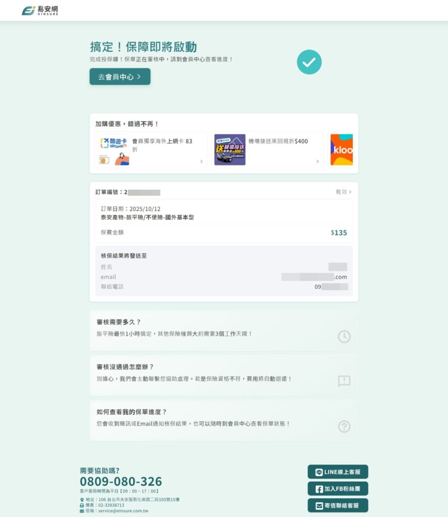 真的非常快速,投保就是幾分鐘的事,而且最快一小時就生效