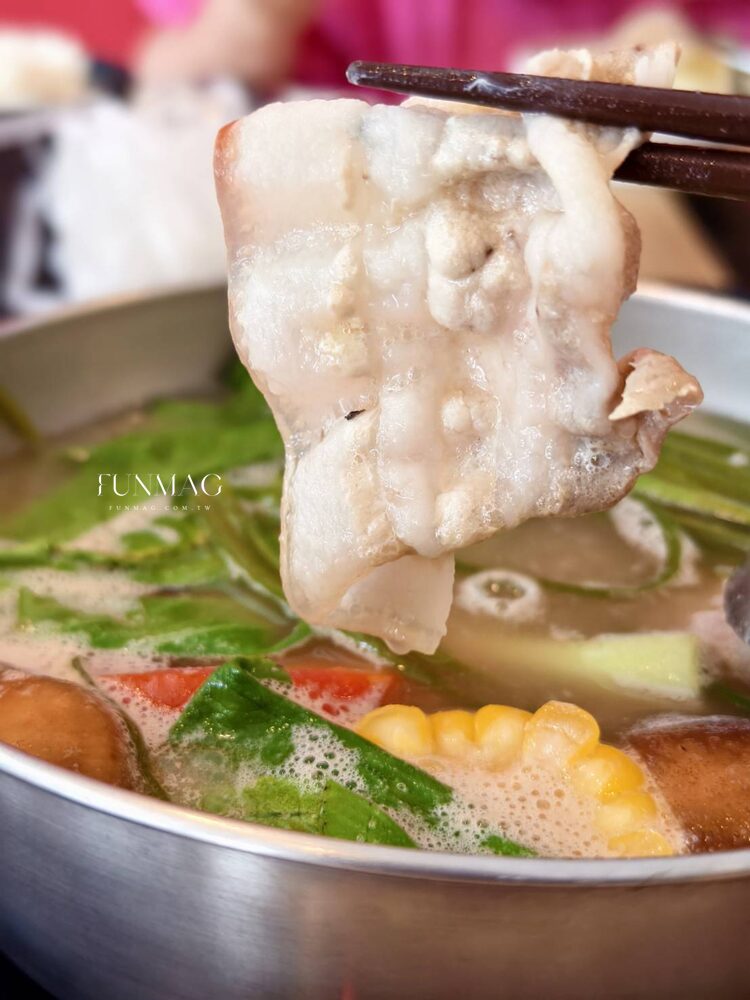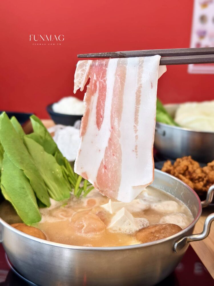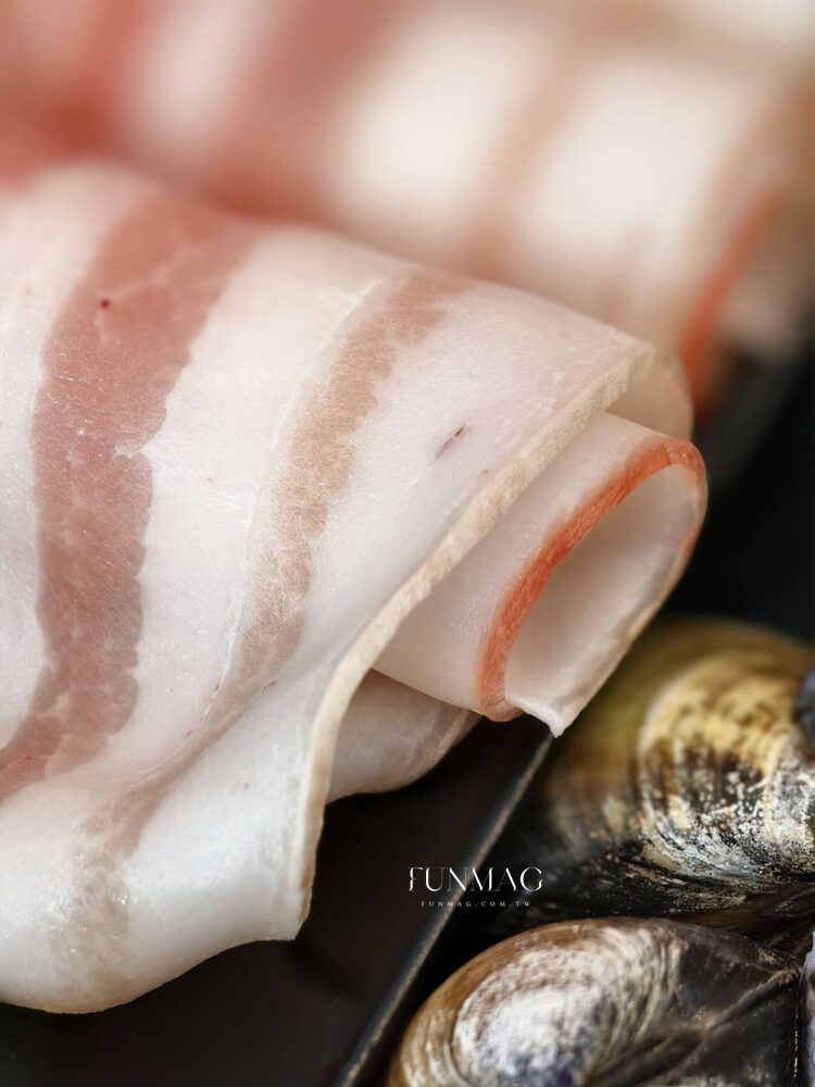 它們的五花肉片非常特別,是帶皮處理,坊間火鍋店較少見到
