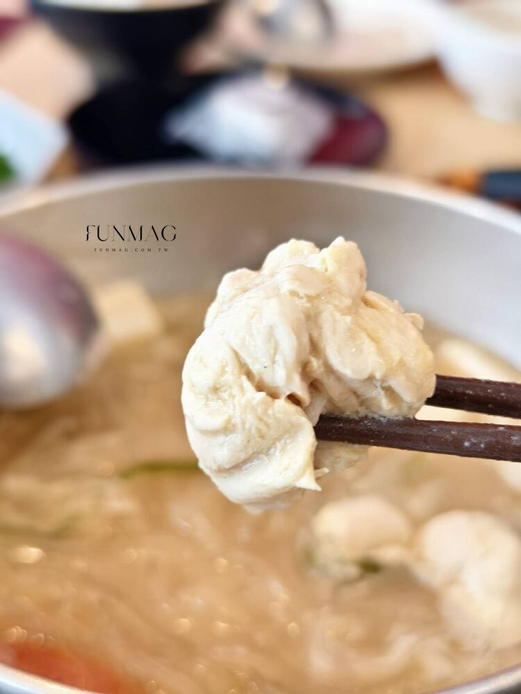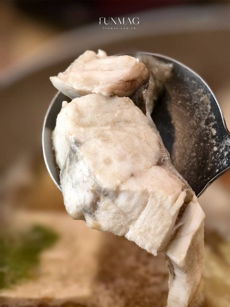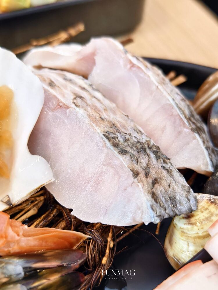 鱸魚片給得很厚切,口感嫩中帶彈,沒有土味或腥味,適合用清雞湯頭涮,感受鱸魚原始的滋味,肉質柔軟多汁,吃起來相當清爽不膩口