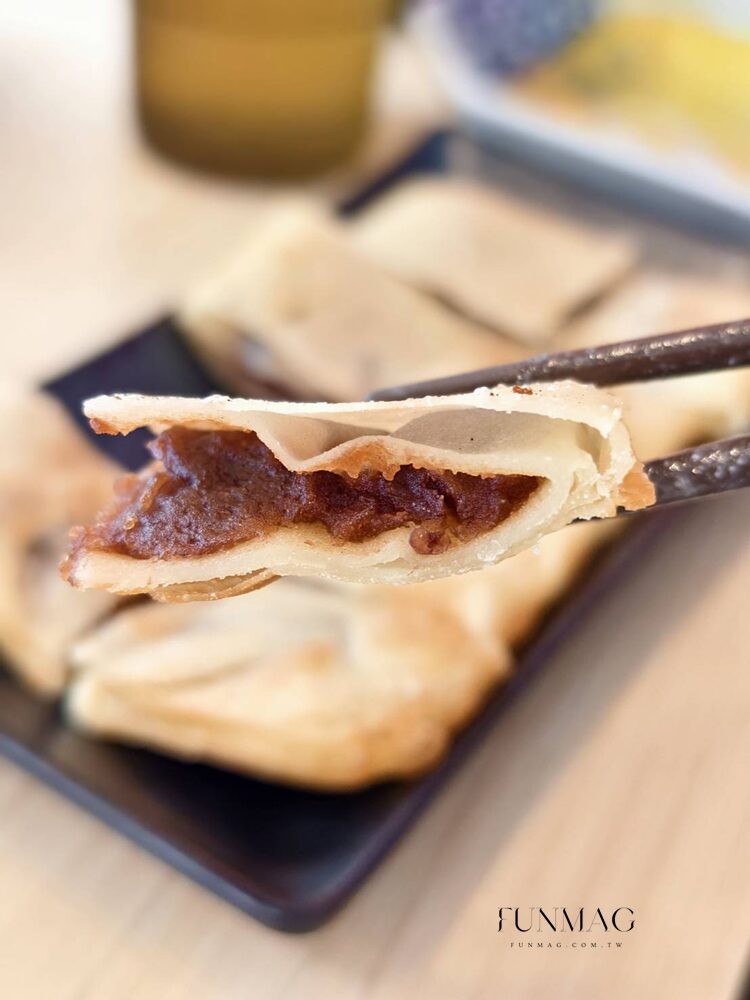 飽餐後必須來點甜!推薦這款中式甜點,外衣酥脆,內餡綿密,完美展現外酥內軟的黃金口感,甜度控制得宜,豆沙餡非常綿密,吃起來甜而不膩
