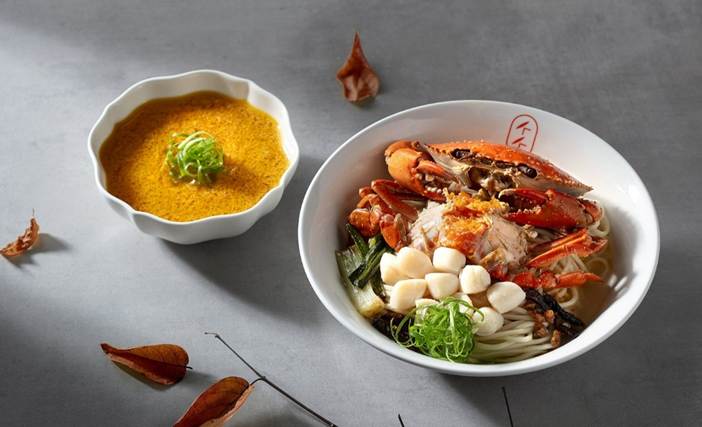 冬季「蟹」定的美味,錯過再等一年!去年秋季限期推出「蟹黃流金拌麵」一上市即掀起熱潮,短短三個月熱銷10萬碗,堆疊起來的高度媲美12棟台北101。延續這股高人氣,墨竹亭鎖定秋冬品蟹尾季,今年春節全台門市限期推出「蟹黃紅蟳煨麵套餐」,以388元暖心回歸,整隻紅蟳完整入麵,一次享有招牌開胃小菜及美味飲品,為年節餐桌增添滿滿氣勢;墨竹亭以獨特「煨麵」製法,將雞豬高湯慢火煨煮,入口溫潤不厚重,金黃色澤透著蟹黃與蟹肉的自然鮮甜,拌入金鉤蝦、乾香菇與蒜頭酥,讓海味、肉香與蒜香交織出濃而不膩的層次煨湯原味,再拌入濃郁紅蟳蟹黃醬完整融入麵體,打造「湯、醬、蟹黃入麵」的三段式吃法,將整隻螃蟹的精華一次收進碗裡;店內更提供三種辣度調味料自由調配,從香麻微辣到辛辣過癮,滿足不同味蕾喜好,是饕客與螃蟹控不可錯過的壓軸美味。