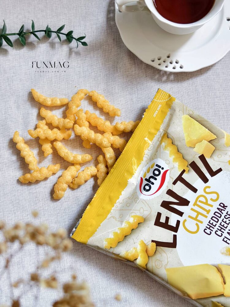小扁豆脆片使用營養價值高紅扁豆;入口時立刻感受到濃郁的起司香氣,帶著一點鹹香奶味,香濃的滋味非常涮嘴,喜歡起司的人一定會愛這款