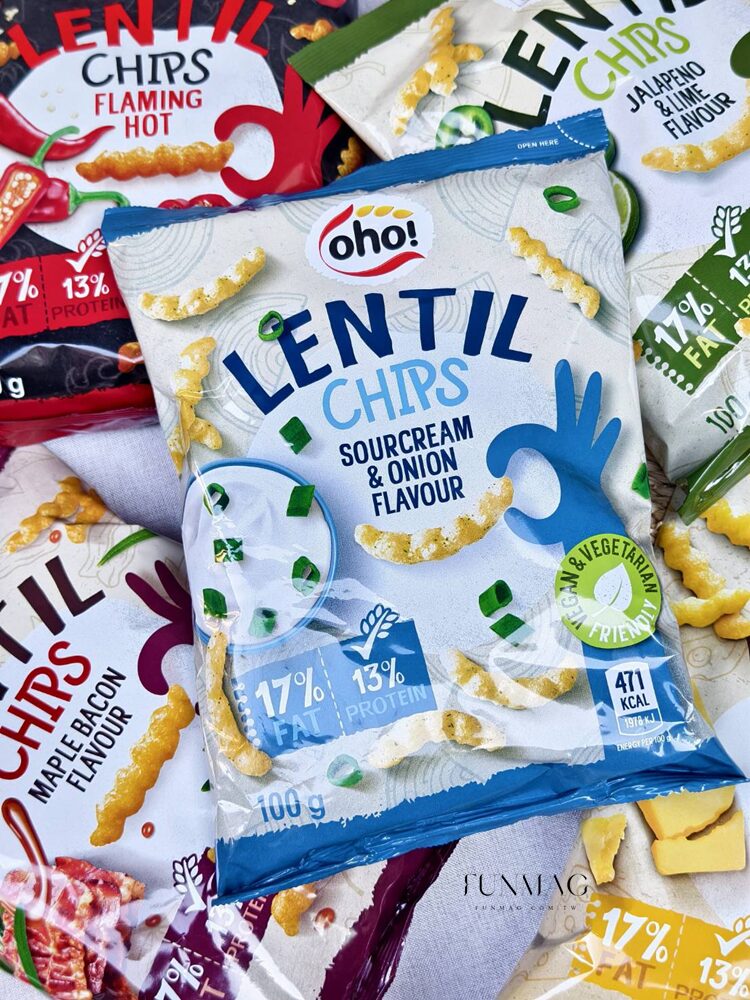 小扁豆脆片每100g含13克植物蛋白質喔!算是一款擁有蛋白質的零食,這款「微酸」的酸奶風味與「為嗆」的洋蔥味達到了極佳的平衡,酸中帶著清爽,非常開胃!