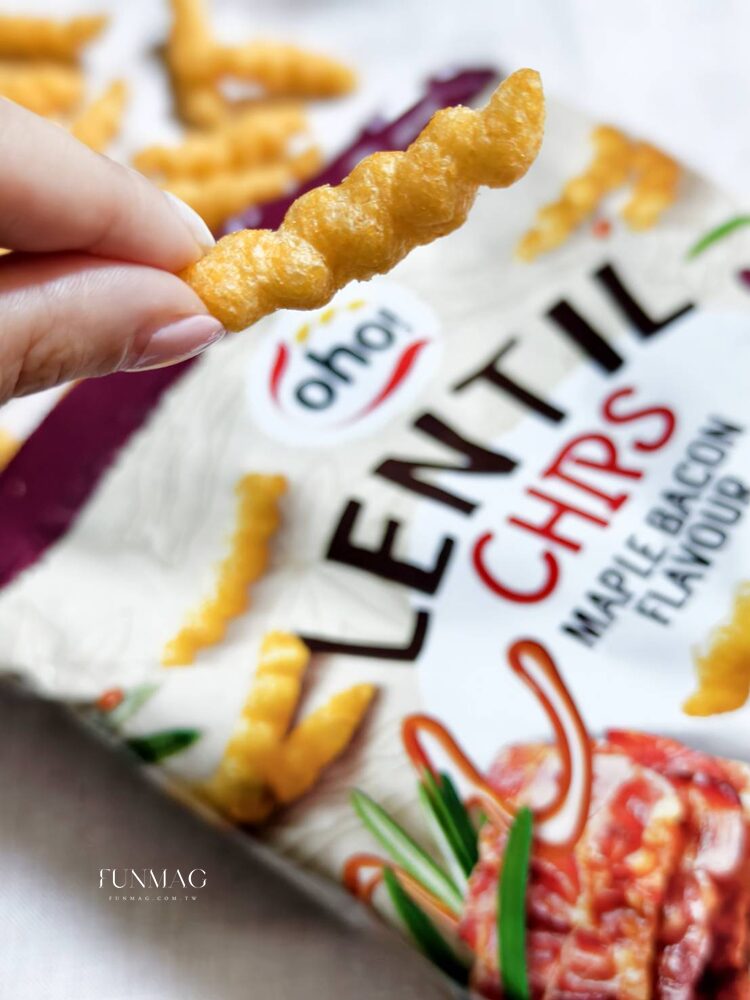 一入口就是甜鹹交織的驚喜,酥脆度依舊滿分,楓糖的香甜與煙燻的鹹香完美結合,它還帶點BBQ的風味,整體很有層次;小扁豆脆片可是全球熱銷1億包的優質零食喔!