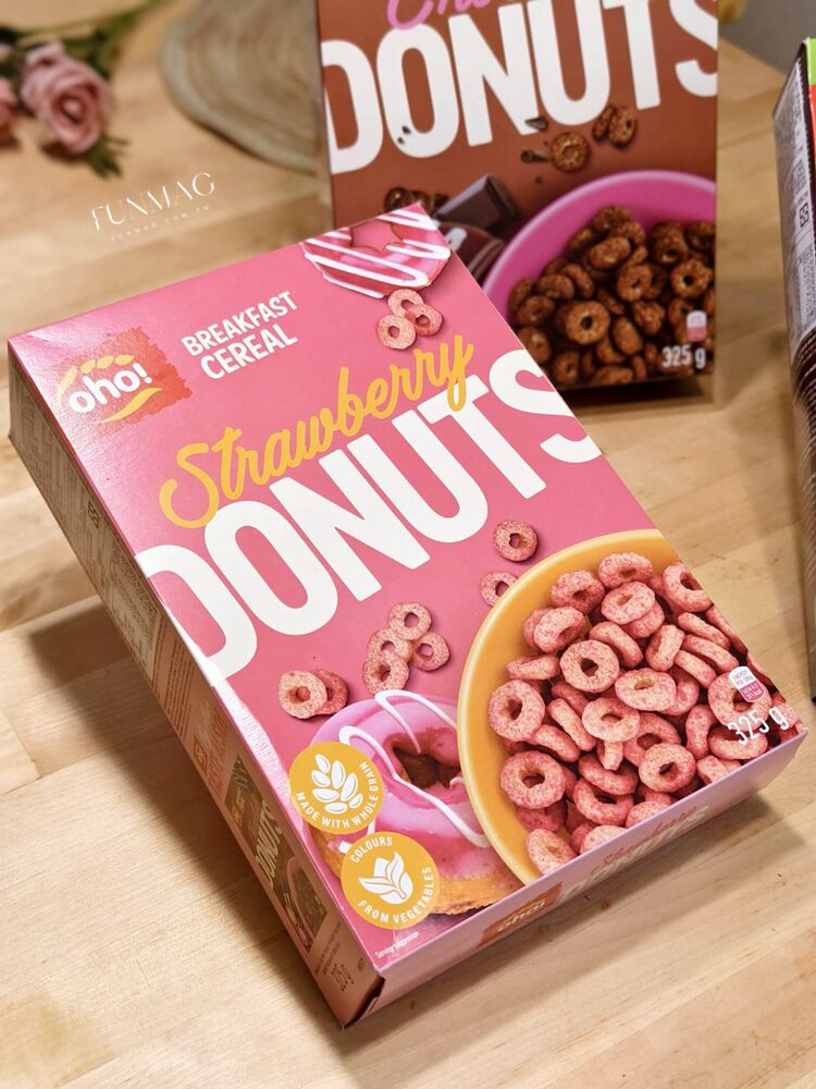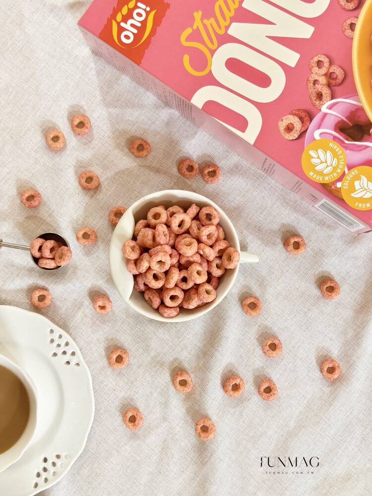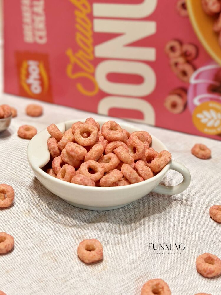 歐美人士最愛的cereal,一打開就聞到香氣撲鼻的草莓味,粉嫩嫩的甜甜圈造型可是天然染色唷!使用蔬果濃縮染色,而非用化學色素,小孩吃也安心