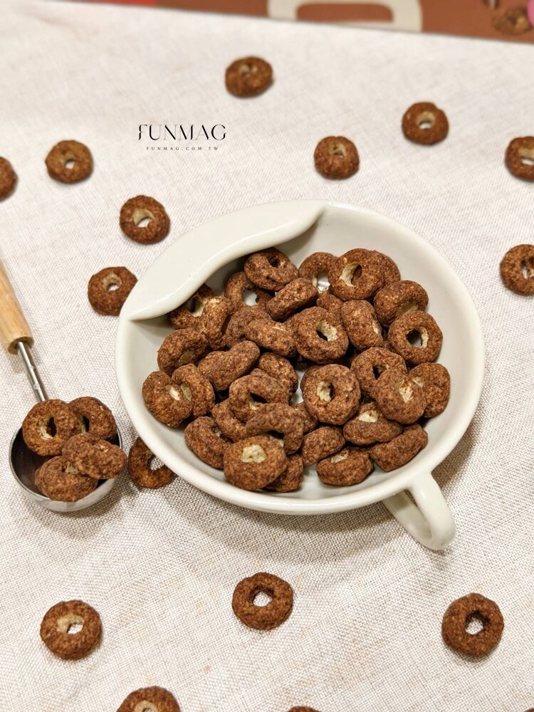 迷你的甜甜圈造型,醇厚的巧克力風味,可可香氣十足,整體吃起來不會過分甜膩,由於口感酥脆有勁,單獨抓著當零食,就像在吃迷你巧克力餅乾一樣涮嘴