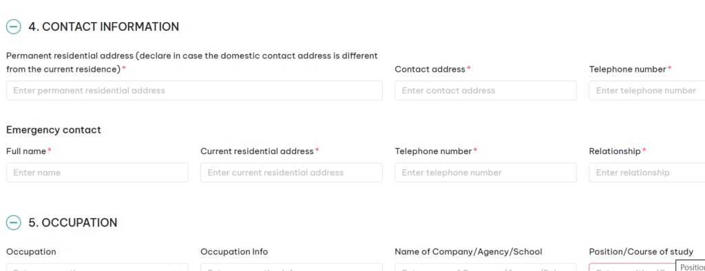 自己辦的話要填非常多的資料,越南當地地址、緊急聯絡人的資料都要,花的時間相對很多
